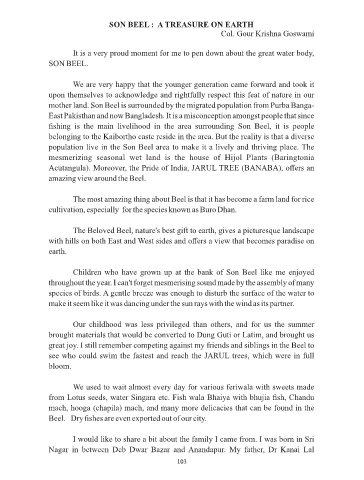 mother land. Son Beel is surrounded by the migrated population from Purba Banga-