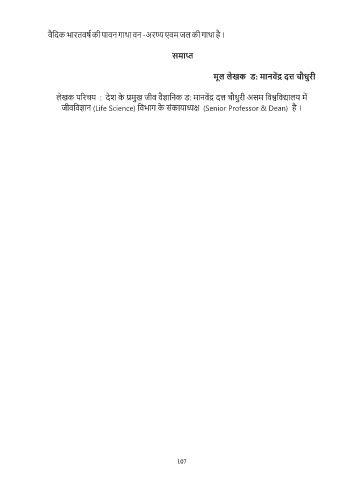 ै विदक भारतवष की पावन गाथा वन -अर एवम जल की गाथा ह । ै समा े ु ू मल लखक ड: मानव द चौधरी ु े े लखक प रचय : दश क मख जीव व ािनक ड: मानव द चौधरी असम िव िव ालय म ै ु े ै े जीविव ान (Life Science) िवभाग क सकाया (Senior Professor & Dean) ह । ं 107