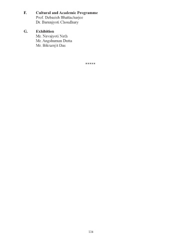 F. Cultural and Academic Programme Prof. Debasish Bhattacharjee Dr. Barunjyoti Choudhury G. Exhibition Mr. Navajyoti Nath Mr. Angshuman Dutta Mr. Bikramjit Das ***** 116