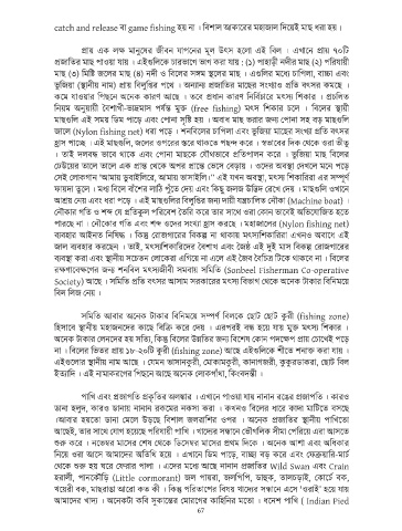 catch and release বা game fishing হয় না । িবশাল আকােরর মহাজাল িদেয়ই মাছ ধরা হয় ৷